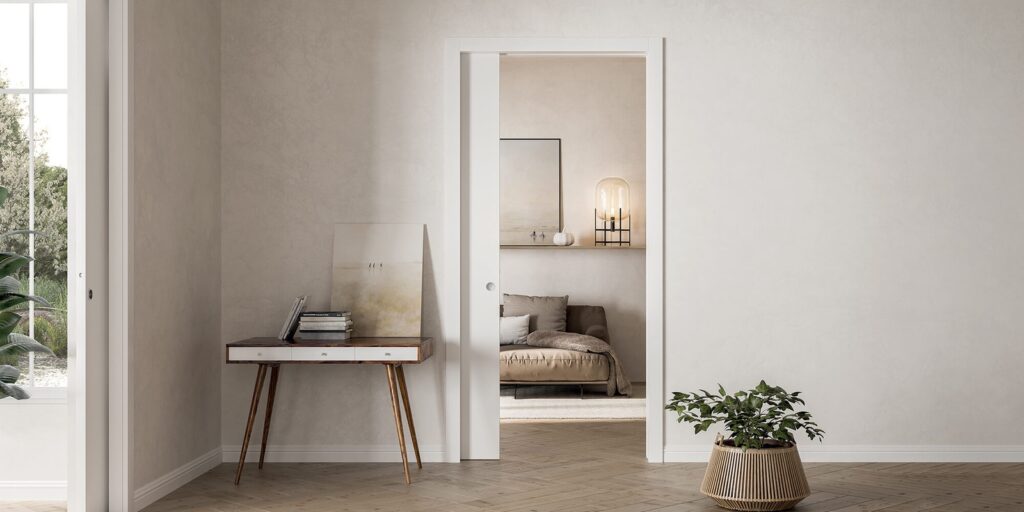 Wenn Sie auf der Suche nach einer stilvollen Möglichkeit sind, mehr Platz in Ihrem Zuhause zu schaffen, ist eine ECLISSE-Schiebetür genau das Richtige für Sie. Die in die Wand gleitende Tür eignet sich perfekt für kleine Räume, in denen kein Platz für eine Drehtür ist. Es verleiht jeder Raumgröße und jedem Raumstil Flexibilität.